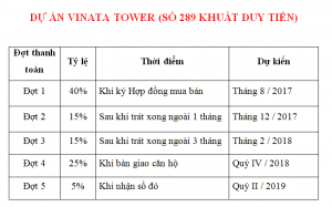 • Tiến độ đóng tiền của Dự án Vinata Tower gồm 5 đợt